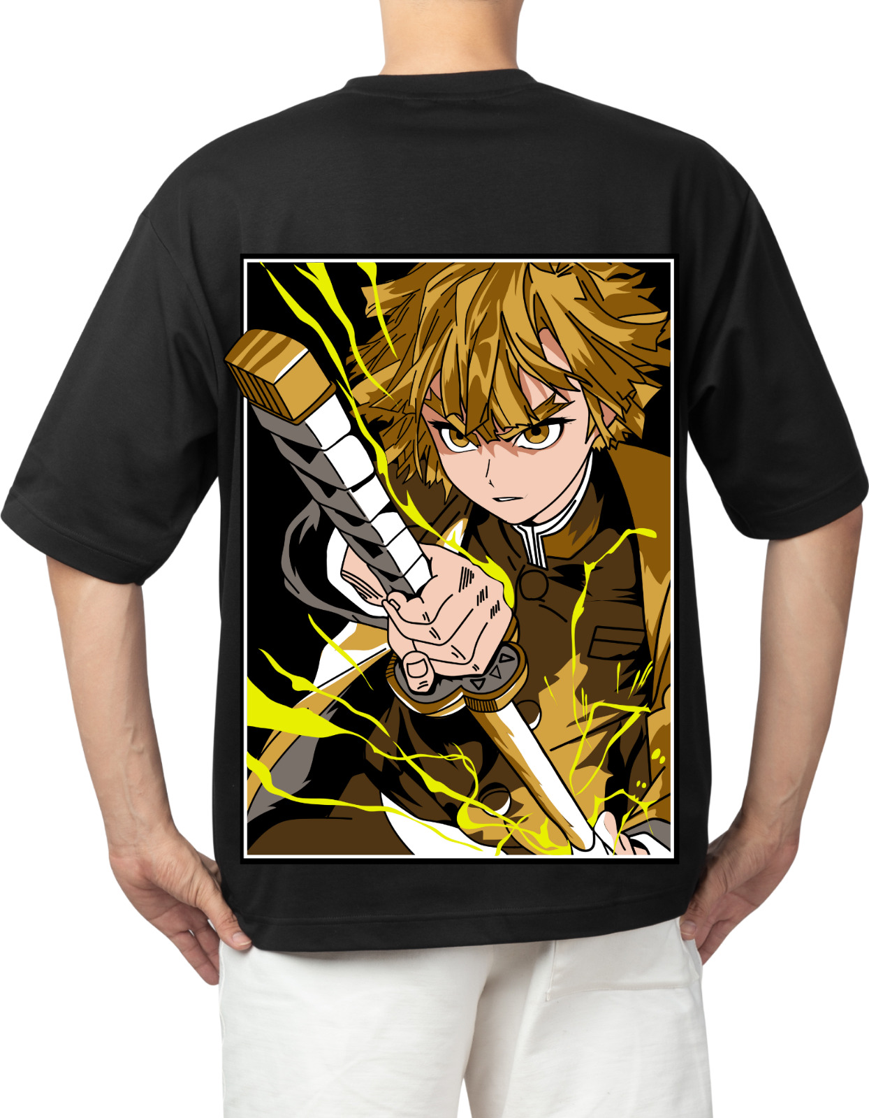 Unleash the storm with the Thunderclap Rebellion — a bold tribute to Zenitsu Agatsuma’s electrifying Thunder Breathing technique. This oversized anime tee fuses Demon Slayer intensity with underground streetwear edge, featuring a high-voltage back print that captures Zenitsu mid-strike, surrounded by crackling yellow lightning. Crafted from 100% bio-washed cotton, this 180 GSM heavyweight tee delivers premium comfort and durability. The oversized fit and drop-shoulder silhouette make it a perfect canvas for anime expression and streetwear swagger. Whether you're powering through the day or charging into the night, this tee hits harder than a Thunderclap Flash.